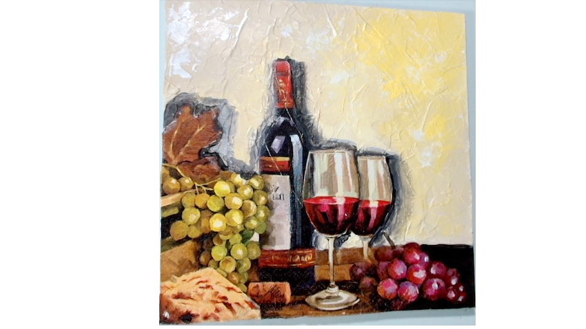 Bodegon de uvas con botella cantidad